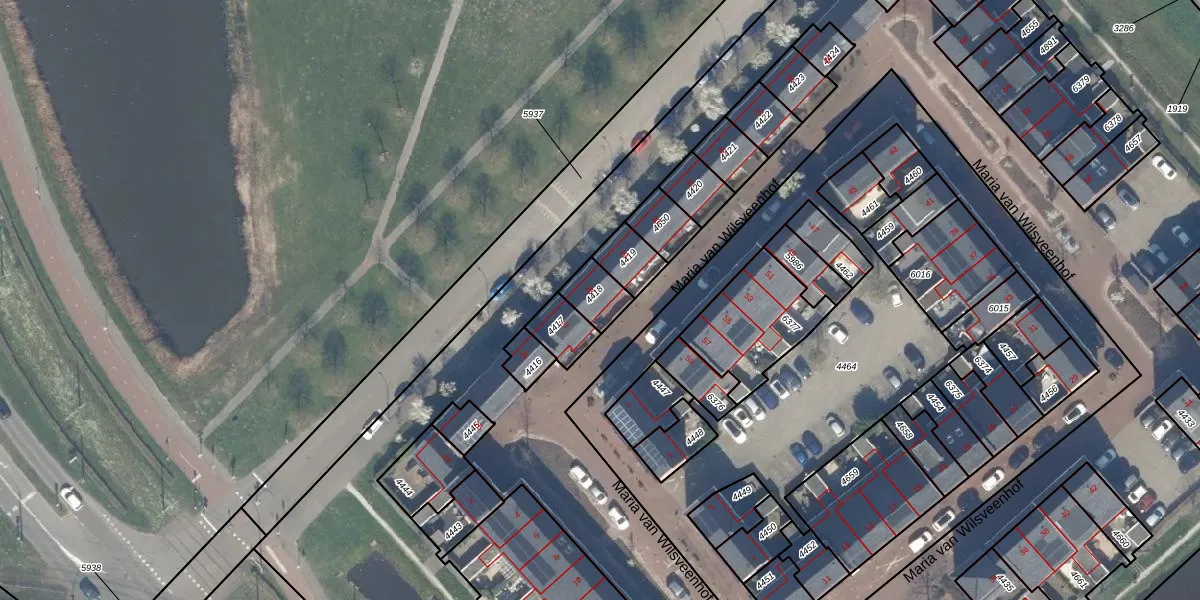 Het adres is gelegen op perceel 4418 in de sectie A en de kadastrale gemeente Nootdorp. De kadastrale aanduiding is aldus NDP01-A-4418. Het perceel is kleiner dan gemiddeld in Nootdorp. Het perceel is 82 m² groot, terwijl het gemiddelde ligt op 1150,92 m². De grootste perceeloppervlakte in de kadastrale gemeente is 62,8 ha. De kleinste oppervlakte bedraagt 0 m². Er zijn geen andere adressen aanwezig op het perceel. De laatste wijziging in het de Basisregistratie Kadaster (BRK) was op 10-12-2009.