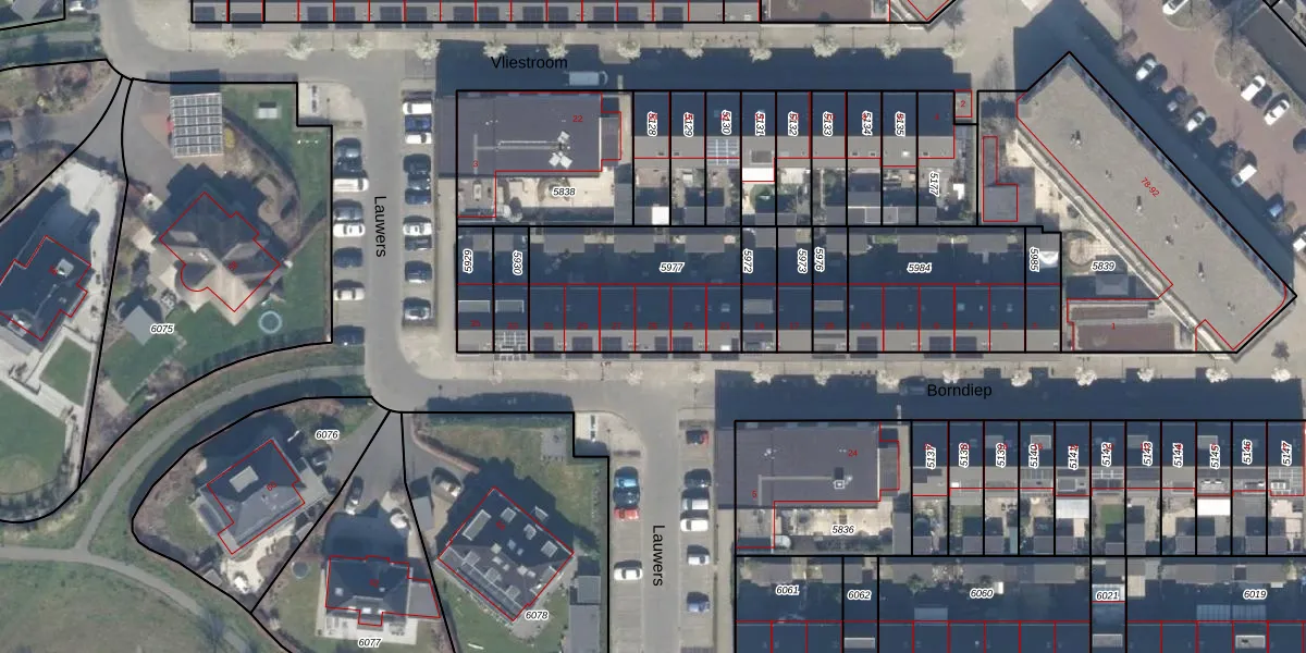 Het perceel waarop Borndiep 25 staat heeft een oppervlakte van 626 m². Dit is een groot perceel. De perceeloppervlakte wordt geregistreerd door het Kadaster. Gedetailleerde informatie over de maten van dit perceel kunt u vinden in het rapport Kadastrale kaart met maatvoering van Borndiep 25.