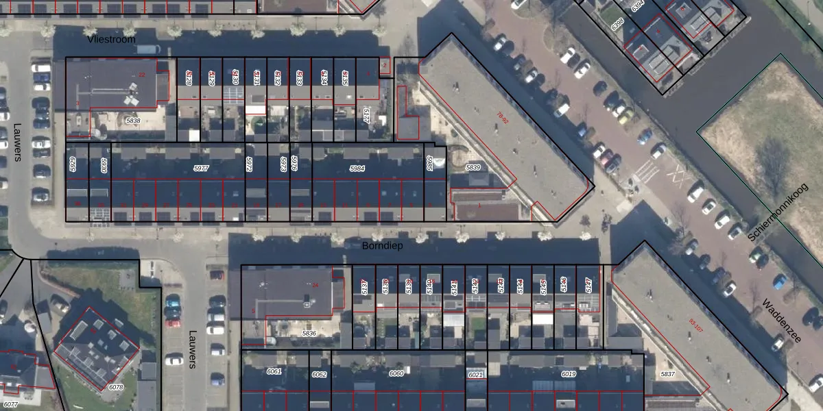 Het perceel waarop Borndiep 5 staat heeft een oppervlakte van 525 m². Dit is een groot perceel. De perceeloppervlakte wordt geregistreerd door het Kadaster. Gedetailleerde informatie over de maten van dit perceel kunt u vinden in het rapport Kadastrale kaart met maatvoering van Borndiep 5.