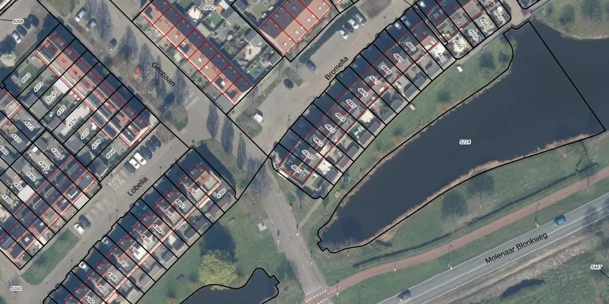 Het perceel waarop Bromelia 4 staat heeft een oppervlakte van 129 m². Dit is een middelgroot perceel. De perceeloppervlakte wordt geregistreerd door het Kadaster. Gedetailleerde informatie over de maten van dit perceel kunt u vinden in het rapport Kadastrale kaart met maatvoering van Bromelia 4.