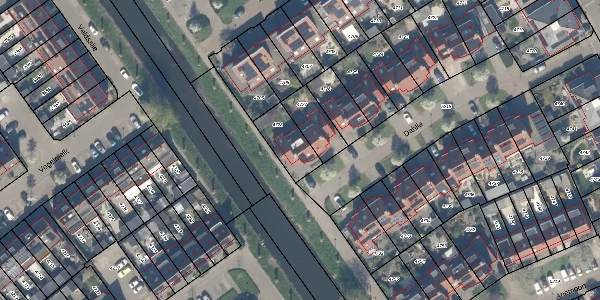 Gebruik de zoekbalk of klik op een perceel voor informatie over de adressen binnen dit perceel.