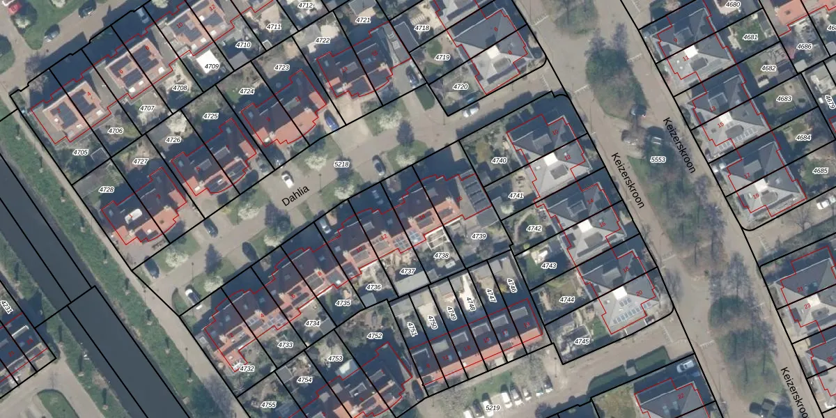 Gebruik de zoekbalk of klik op een perceel voor informatie over de adressen binnen dit perceel.