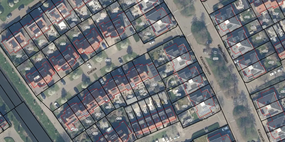 Het perceel waarop Dahlia 16 staat heeft een oppervlakte van 362 m². Dit is een groot perceel. De perceeloppervlakte wordt geregistreerd door het Kadaster. Gedetailleerde informatie over de maten van dit perceel kunt u vinden in het rapport Kadastrale kaart met maatvoering van Dahlia 16.
