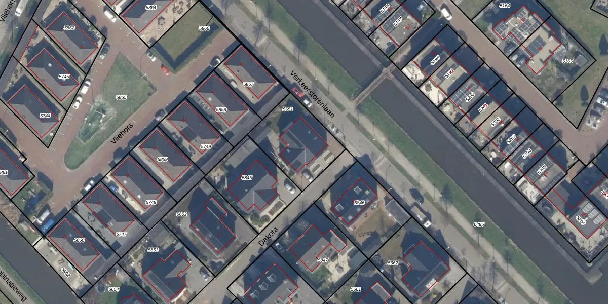 Het perceel waarop Dakota 1 staat heeft een oppervlakte van 520 m². Dit is een groot perceel. De perceeloppervlakte wordt geregistreerd door het Kadaster. Gedetailleerde informatie over de maten van dit perceel kunt u vinden in het rapport Kadastrale kaart met maatvoering van Dakota 1.