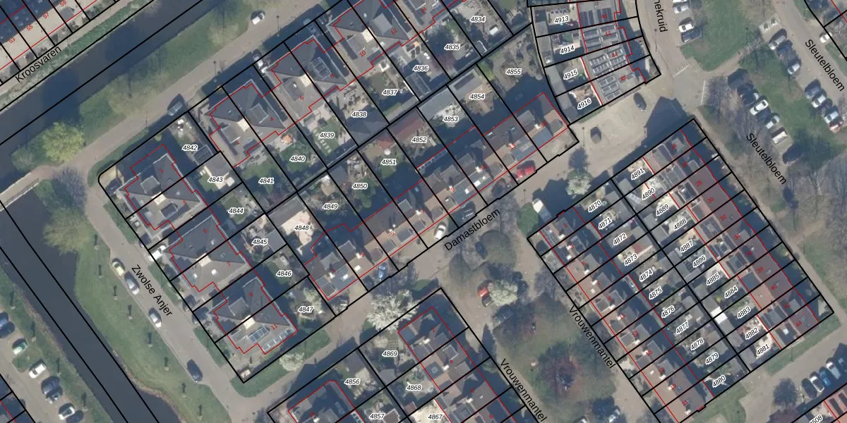 Gebruik de zoekbalk of klik op een perceel voor informatie over de adressen binnen dit perceel.
