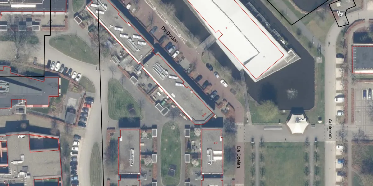 Het perceel waarop De Doelen 7 staat heeft een oppervlakte van 14,4 ha. Dit is een zeer groot perceel. De perceeloppervlakte wordt geregistreerd door het Kadaster. Gedetailleerde informatie over de maten van dit perceel kunt u vinden in het rapport Kadastrale kaart met maatvoering van De Doelen 7.
