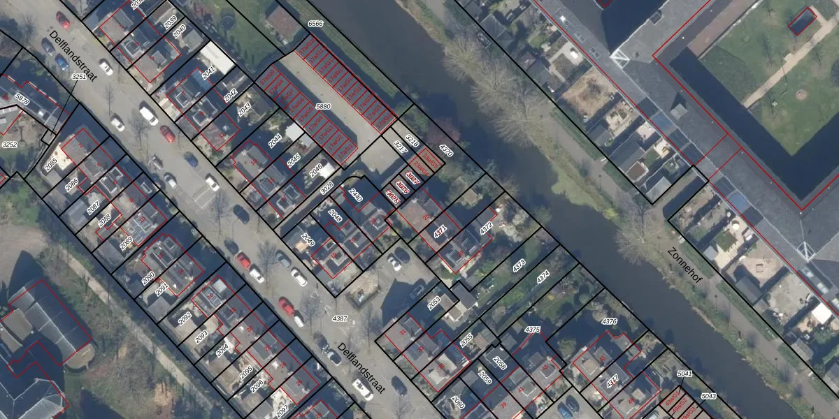 Delflandstraat 25 is gelegen op kadastraal perceel NDP01A4370. Deze kadastrale aanduiding is uniek en wordt gebruikt door het Kadaster om eigendomsrechten en andere zakelijke rechten vast te leggen. Het perceel maakt onderdeel uit van de kadastrale gemeente Nootdorp.