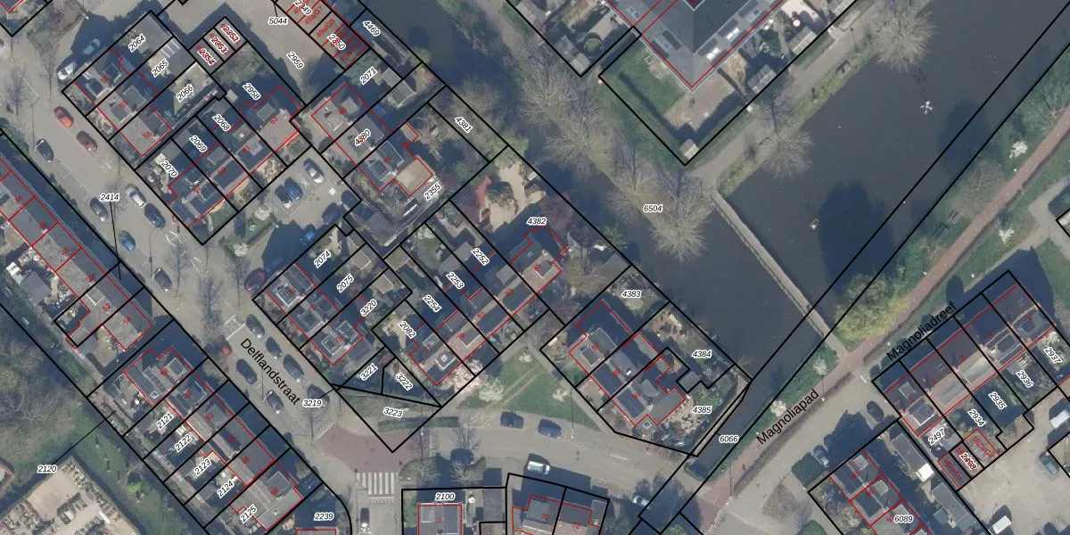 Het perceel waarop Delflandstraat 85 staat heeft een oppervlakte van 518 m². Dit is een groot perceel. De perceeloppervlakte wordt geregistreerd door het Kadaster. Gedetailleerde informatie over de maten van dit perceel kunt u vinden in het rapport Kadastrale kaart met maatvoering van Delflandstraat 85.