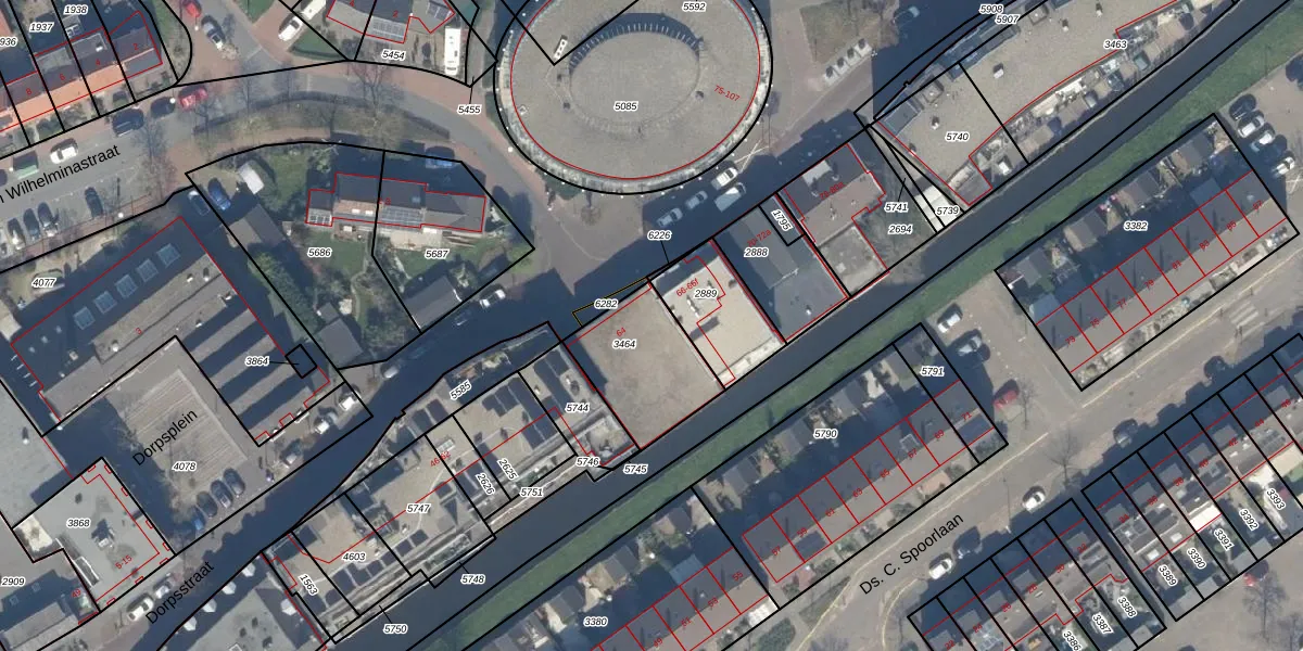 Het perceel waarop Dorpsstraat 64-u staat heeft een oppervlakte van 309 m². Dit is een groot perceel. De perceeloppervlakte wordt geregistreerd door het Kadaster. Gedetailleerde informatie over de maten van dit perceel kunt u vinden in het rapport Kadastrale kaart met maatvoering van Dorpsstraat 64-u.