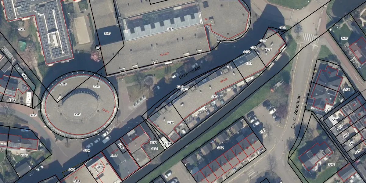 Het perceel waarop Dorpsstraat 82 staat heeft een oppervlakte van 107 m². Dit is een middelgroot perceel. De perceeloppervlakte wordt geregistreerd door het Kadaster. Gedetailleerde informatie over de maten van dit perceel kunt u vinden in het rapport Kadastrale kaart met maatvoering van Dorpsstraat 82.