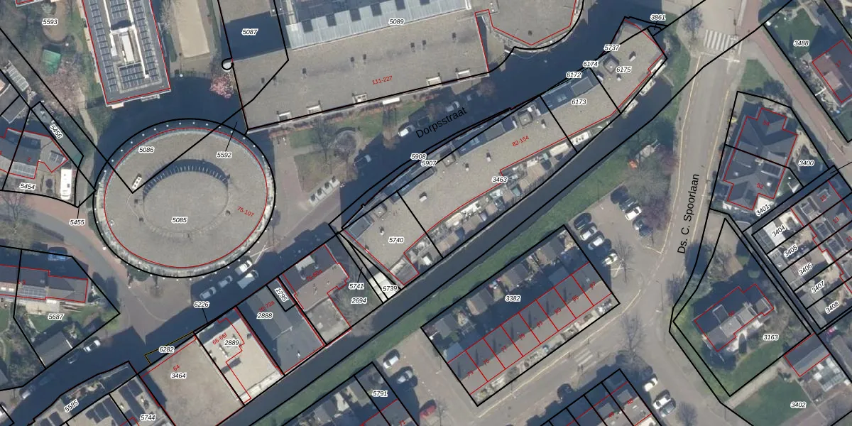 Het perceel waarop Dorpsstraat 88 staat heeft een oppervlakte van 740 m². Dit is een groot perceel. De perceeloppervlakte wordt geregistreerd door het Kadaster. Gedetailleerde informatie over de maten van dit perceel kunt u vinden in het rapport Kadastrale kaart met maatvoering van Dorpsstraat 88.