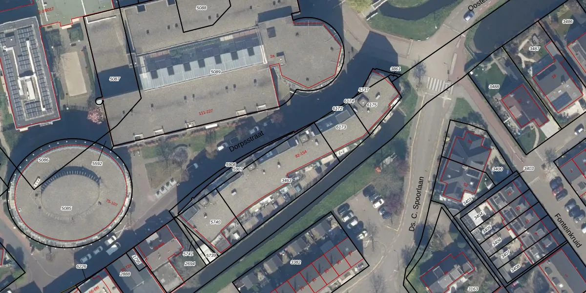 Het perceel waarop Dorpsstraat 96 staat heeft een oppervlakte van 740 m². Dit is een groot perceel. De perceeloppervlakte wordt geregistreerd door het Kadaster. Gedetailleerde informatie over de maten van dit perceel kunt u vinden in het rapport Kadastrale kaart met maatvoering van Dorpsstraat 96.