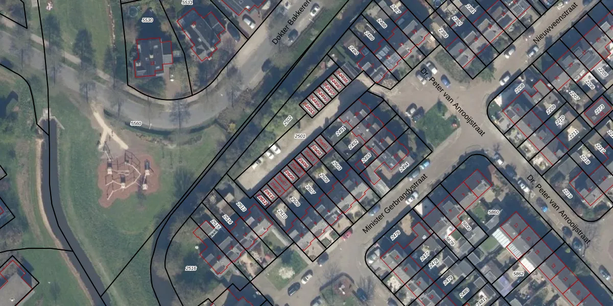Dr. Peter van Anrooijstraat 25-a-G3 is gelegen op kadastraal perceel NDP01C2505. Deze kadastrale aanduiding is uniek en wordt gebruikt door het Kadaster om eigendomsrechten en andere zakelijke rechten vast te leggen. Het perceel maakt onderdeel uit van de kadastrale gemeente Nootdorp.