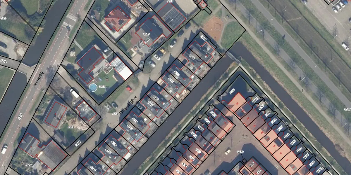 Droppinghof 12 is gelegen op kadastraal perceel NDP01C5721. Deze kadastrale aanduiding is uniek en wordt gebruikt door het Kadaster om eigendomsrechten en andere zakelijke rechten vast te leggen. Het perceel maakt onderdeel uit van de kadastrale gemeente Nootdorp.