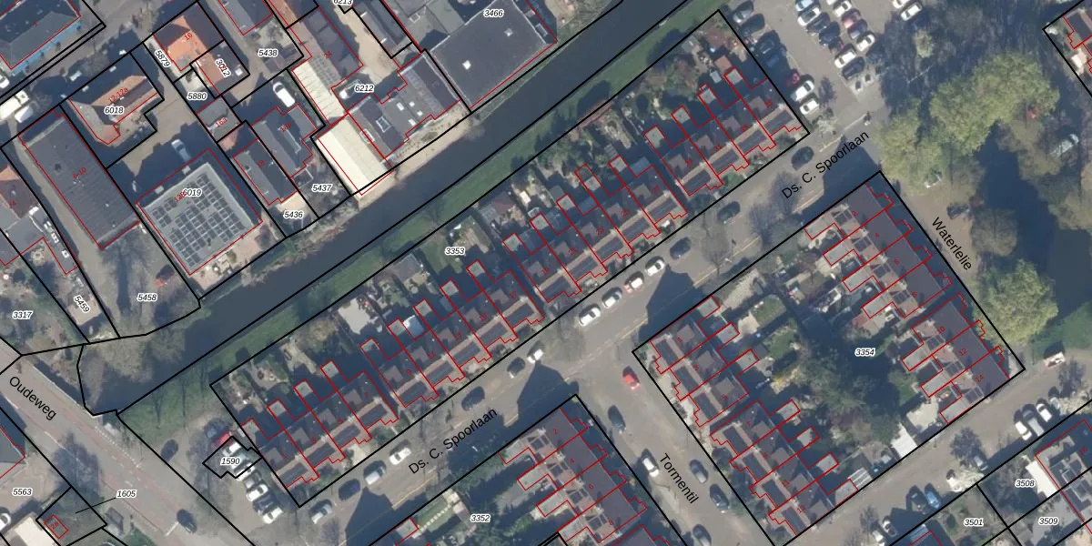 Het perceel waarop Ds. C. Spoorlaan 19 staat heeft een oppervlakte van 3094 m². Dit is een zeer groot perceel. De perceeloppervlakte wordt geregistreerd door het Kadaster. Gedetailleerde informatie over de maten van dit perceel kunt u vinden in het rapport Kadastrale kaart met maatvoering van Ds. C. Spoorlaan 19.