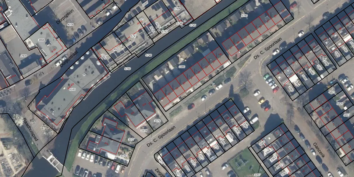 Ds. C. Spoorlaan 43 is gelegen op kadastraal perceel NDP01C3380. Deze kadastrale aanduiding is uniek en wordt gebruikt door het Kadaster om eigendomsrechten en andere zakelijke rechten vast te leggen. Het perceel maakt onderdeel uit van de kadastrale gemeente Nootdorp.