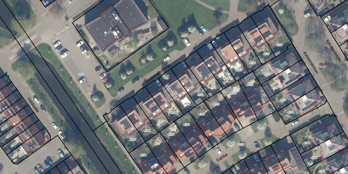 Het perceel waarop Duizendschoon 10 staat heeft een oppervlakte van 233 m². Dit is een middelgroot perceel. De perceeloppervlakte wordt geregistreerd door het Kadaster. Gedetailleerde informatie over de maten van dit perceel kunt u vinden in het rapport Kadastrale kaart met maatvoering van Duizendschoon 10.