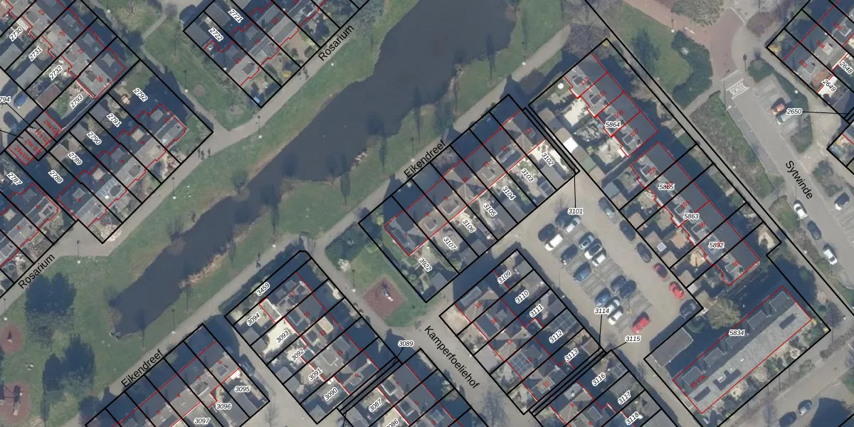 Gebruik de zoekbalk of klik op een perceel voor informatie over de adressen binnen dit perceel.