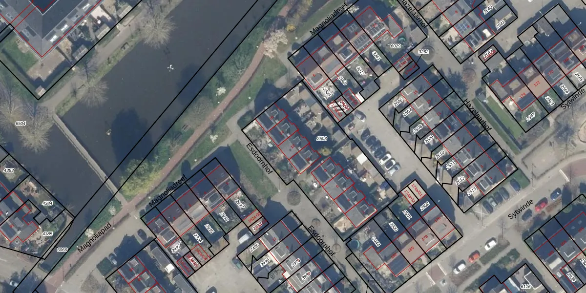 Esdoornhof 12 is gelegen op kadastraal perceel NDP01A2503. Deze kadastrale aanduiding is uniek en wordt gebruikt door het Kadaster om eigendomsrechten en andere zakelijke rechten vast te leggen. Het perceel maakt onderdeel uit van de kadastrale gemeente Nootdorp.