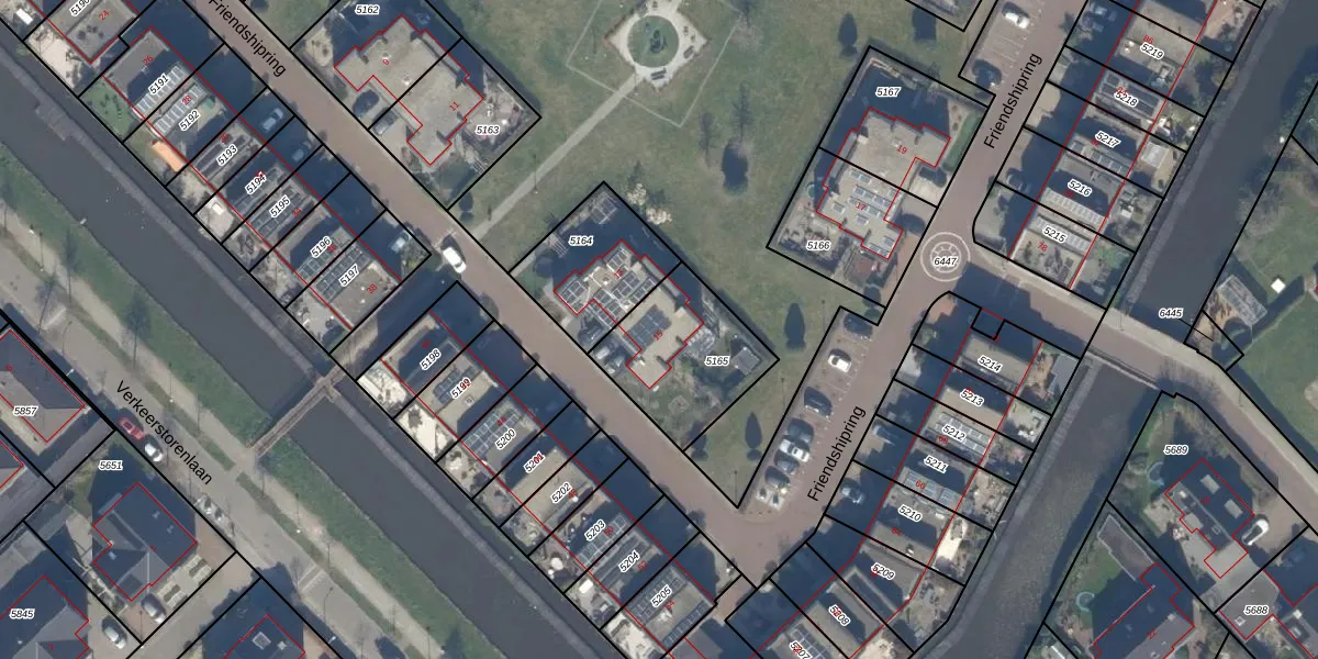 Het perceel waarop Friendshipring 15 staat heeft een oppervlakte van 422 m². Dit is een groot perceel. De perceeloppervlakte wordt geregistreerd door het Kadaster. Gedetailleerde informatie over de maten van dit perceel kunt u vinden in het rapport Kadastrale kaart met maatvoering van Friendshipring 15.