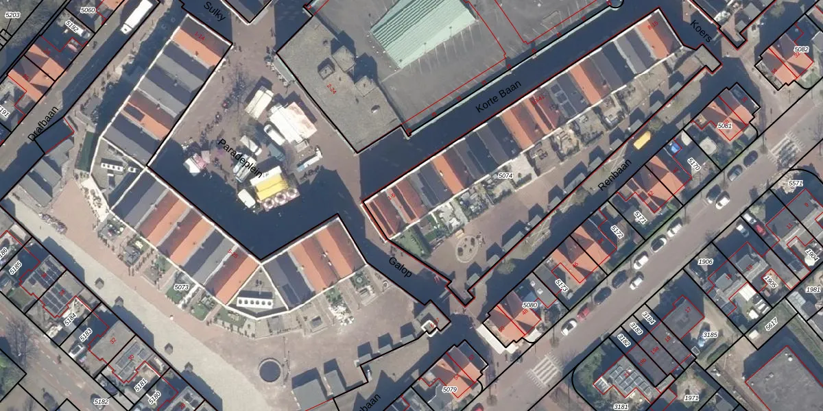 Het perceel waarop Galop 4 staat heeft een oppervlakte van 2180 m². Dit is een zeer groot perceel. De perceeloppervlakte wordt geregistreerd door het Kadaster. Gedetailleerde informatie over de maten van dit perceel kunt u vinden in het rapport Kadastrale kaart met maatvoering van Galop 4.