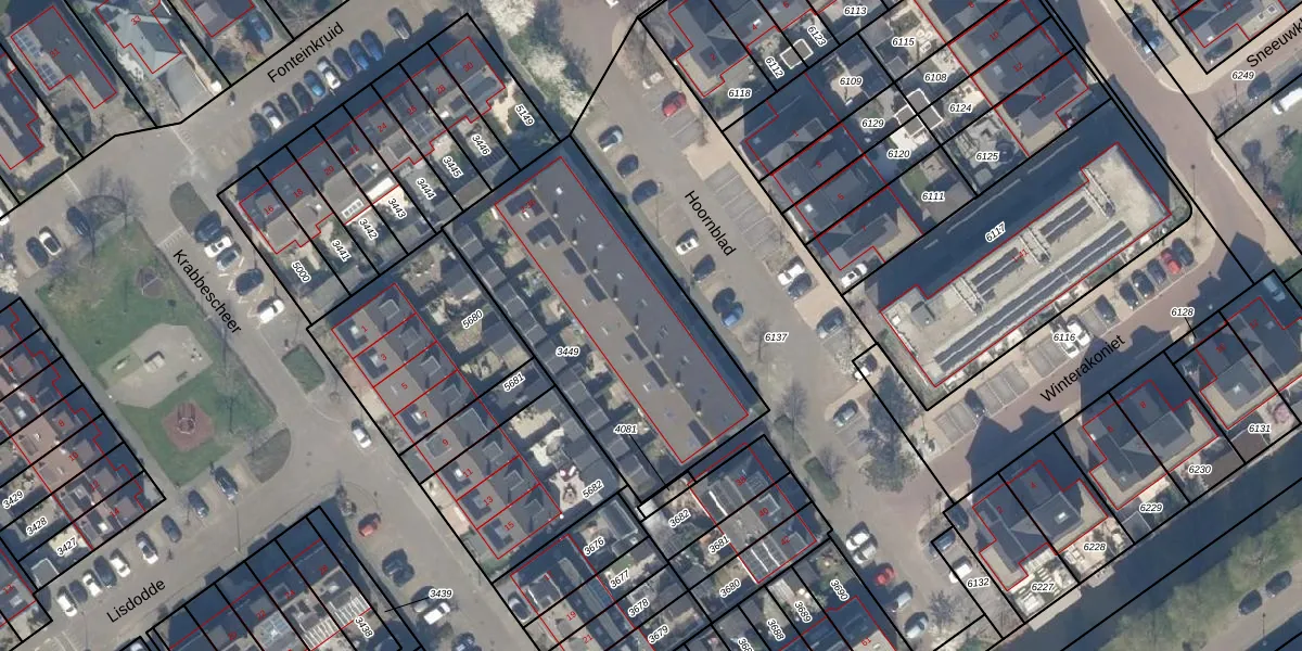 Het perceel waarop Hoornblad 22 staat heeft een oppervlakte van 1266 m². Dit is een zeer groot perceel. De perceeloppervlakte wordt geregistreerd door het Kadaster. Gedetailleerde informatie over de maten van dit perceel kunt u vinden in het rapport Kadastrale kaart met maatvoering van Hoornblad 22.