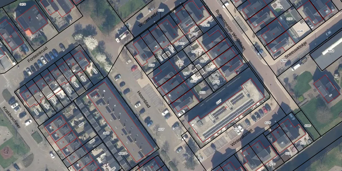Het perceel waarop Hoornblad 3 staat heeft een oppervlakte van 156 m². Dit is een middelgroot perceel. De perceeloppervlakte wordt geregistreerd door het Kadaster. Gedetailleerde informatie over de maten van dit perceel kunt u vinden in het rapport Kadastrale kaart met maatvoering van Hoornblad 3.