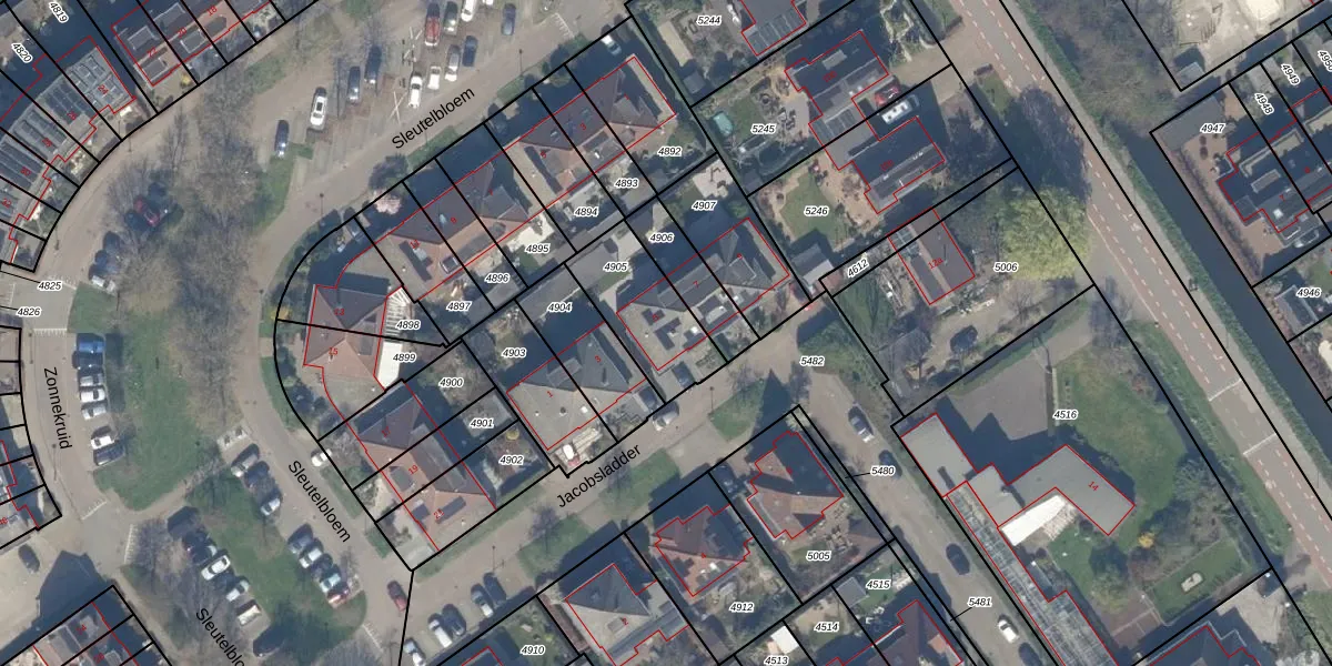 Het perceel waarop Jacobsladder 5 staat heeft een oppervlakte van 295 m². Dit is een middelgroot perceel. De perceeloppervlakte wordt geregistreerd door het Kadaster. Gedetailleerde informatie over de maten van dit perceel kunt u vinden in het rapport Kadastrale kaart met maatvoering van Jacobsladder 5.