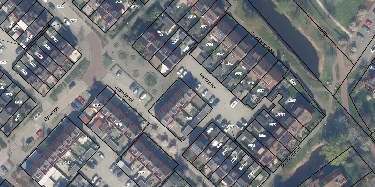 Het perceel waarop Jasmijnhof 9 staat heeft een oppervlakte van 595 m². Dit is een groot perceel. De perceeloppervlakte wordt geregistreerd door het Kadaster. Gedetailleerde informatie over de maten van dit perceel kunt u vinden in het rapport Kadastrale kaart met maatvoering van Jasmijnhof 9.