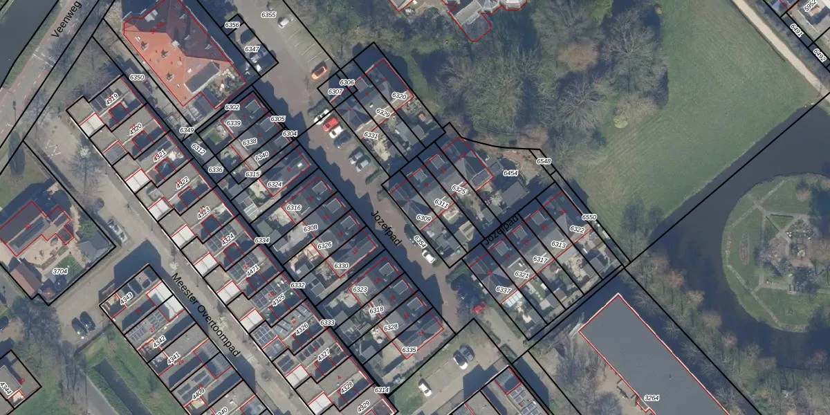 Gebruik de zoekbalk of klik op een perceel voor informatie over de adressen binnen dit perceel.