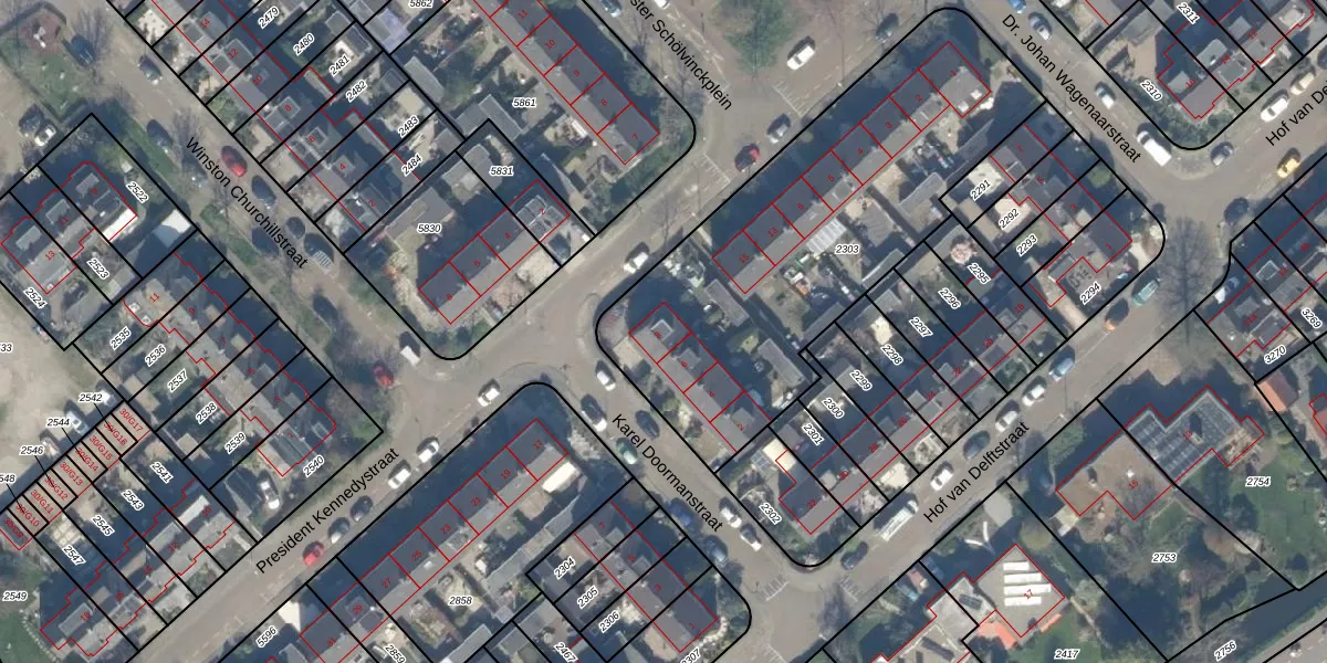 Het adres is gelegen op perceel 2303 in de sectie C en de kadastrale gemeente Nootdorp. De kadastrale aanduiding is aldus NDP01-C-2303. De oppervlakte van het perceel is 1858 m². Dat is groter dan gemiddeld in Nootdorp, waar de gemiddelde perceeloppervlakte op 1150,57 m² ligt. Het kleinste perceel in de kadastrale gemeente is 0 m² groot. De grootste perceeloppervlakte is 62,8 ha. Op het perceel zijn 12 adressen aanwezig. In de Basisregistratie Kadaster (BRK) werden de grenzen van het perceel geregistreerd op 30-10-1998.