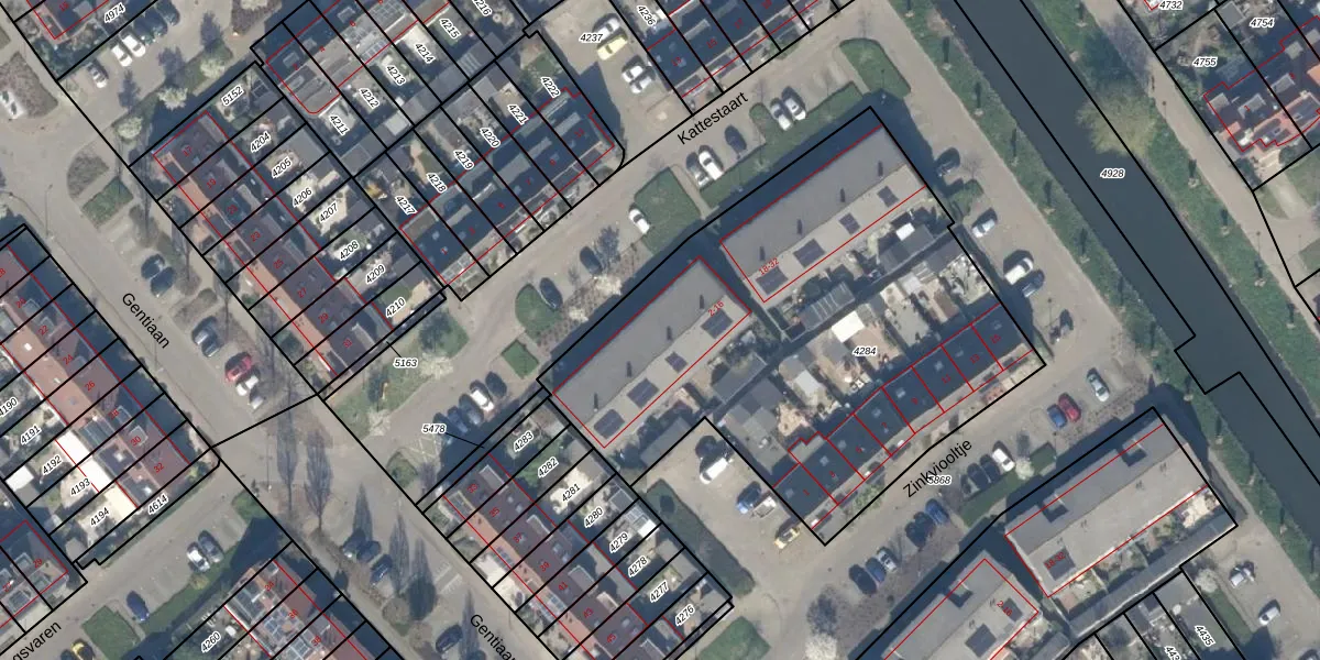 Het perceel waarop Kattestaart 10 staat heeft een oppervlakte van 2555 m². Dit is een zeer groot perceel. De perceeloppervlakte wordt geregistreerd door het Kadaster. Gedetailleerde informatie over de maten van dit perceel kunt u vinden in het rapport Kadastrale kaart met maatvoering van Kattestaart 10.