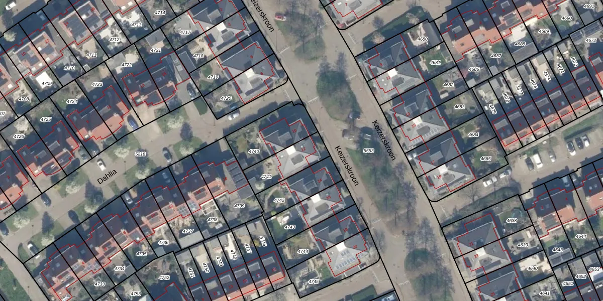 Gebruik de zoekbalk of klik op een perceel voor informatie over de adressen binnen dit perceel.
