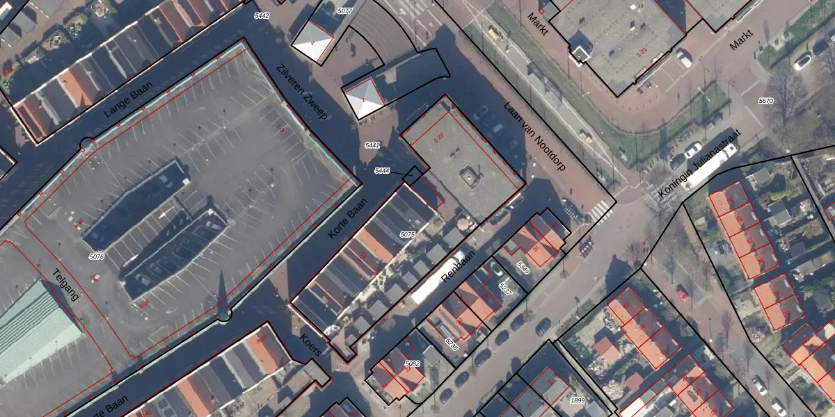 Het perceel waarop het adres ligt is NDP01-C-5075. De afkorting 'NDP01' staat voor kadastrale gemeente Nootdorp. De oppervlakte van het perceel is 1285 m². Dat is groter dan gemiddeld in Nootdorp, waar de gemiddelde perceeloppervlakte op 1150,92 m² ligt. Het kleinste perceel in de kadastrale gemeente is 0 m² groot. De grootste perceeloppervlakte is 62,8 ha. Op het perceel liggen in totaal 25 adressen. De laatste wijziging in het de Basisregistratie Kadaster (BRK) was op 25-02-2009.