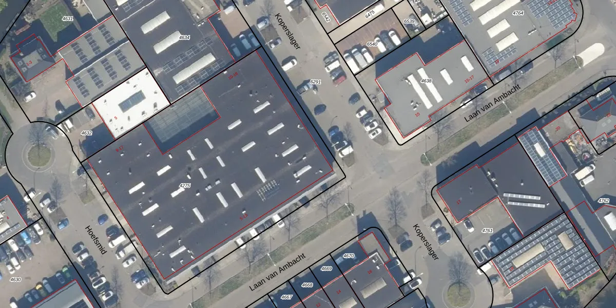 Het perceel waarop Koperslager 18 staat heeft een oppervlakte van 3560 m². Dit is een zeer groot perceel. De perceeloppervlakte wordt geregistreerd door het Kadaster. Gedetailleerde informatie over de maten van dit perceel kunt u vinden in het rapport Kadastrale kaart met maatvoering van Koperslager 18.