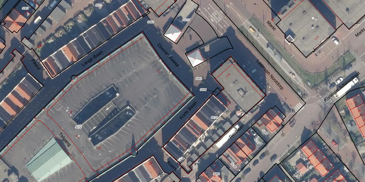 Het perceel waarop Korte Baan 2 staat heeft een oppervlakte van 5360 m². Dit is een zeer groot perceel. De perceeloppervlakte wordt geregistreerd door het Kadaster. Gedetailleerde informatie over de maten van dit perceel kunt u vinden in het rapport Kadastrale kaart met maatvoering van Korte Baan 2.