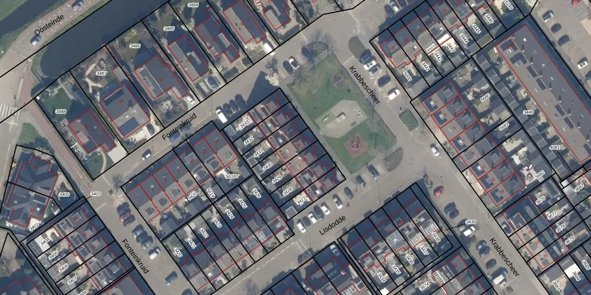 Gebruik de zoekbalk of klik op een perceel voor informatie over de adressen binnen dit perceel.