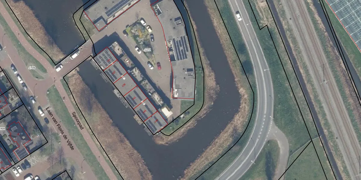 Het perceel waarop het adres ligt is NDP01-B-1221. De afkorting 'NDP01' staat voor kadastrale gemeente Nootdorp. De oppervlakte van het perceel is 3655 m². Dat is groter dan gemiddeld in Nootdorp, waar de gemiddelde perceeloppervlakte op 1150,57 m² ligt. Het kleinste perceel in de kadastrale gemeente is 0 m² groot. De grootste perceeloppervlakte is 62,8 ha. Er zijn 31 adressen aanwezig op het perceel. De huidige grenzen van het perceel zijn digitaal in de Basisregistratie Kadaster (BRK) geregistreerd op 15-03-2011.