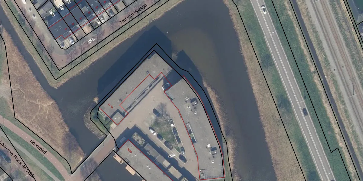 Laan van Floris de Vijfde 55 is gelegen op kadastraal perceel NDP01B1265. Deze kadastrale aanduiding is uniek en wordt gebruikt door het Kadaster om eigendomsrechten en andere zakelijke rechten vast te leggen. Het perceel maakt onderdeel uit van de kadastrale gemeente Nootdorp.