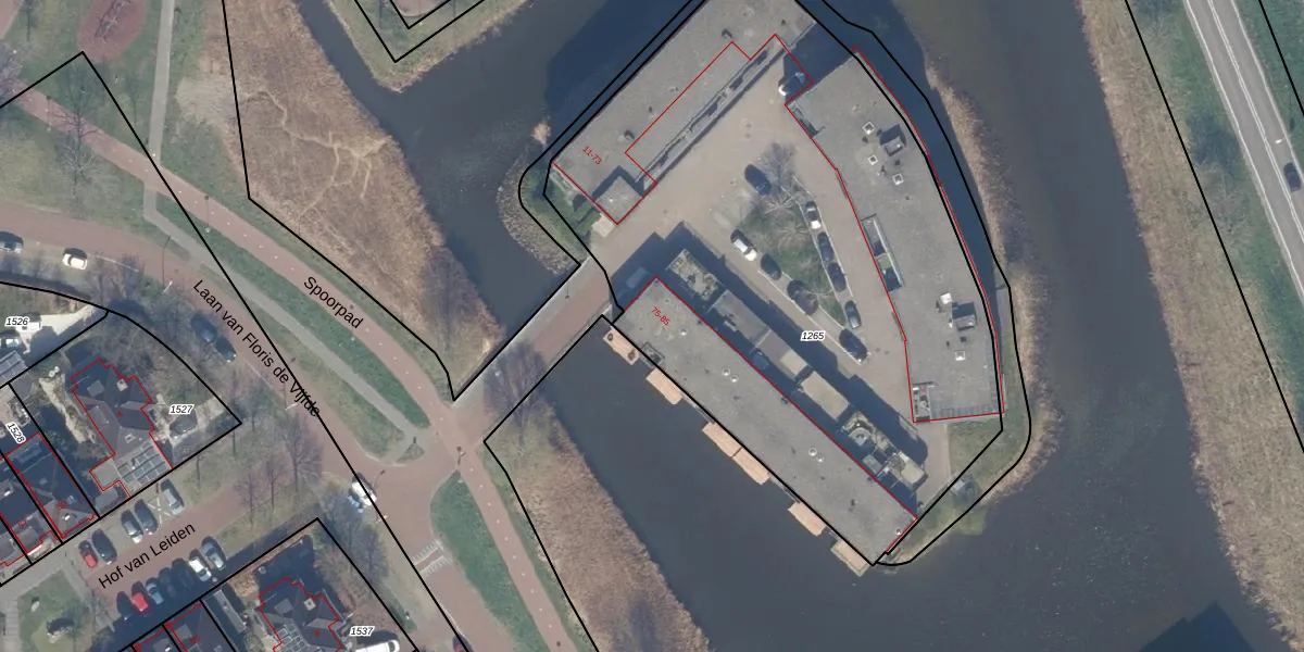 Het perceel waarop Laan van Floris de Vijfde 75 staat heeft een oppervlakte van 3655 m². Dit is een zeer groot perceel. De perceeloppervlakte wordt geregistreerd door het Kadaster. Gedetailleerde informatie over de maten van dit perceel kunt u vinden in het rapport Kadastrale kaart met maatvoering van Laan van Floris de Vijfde 75.