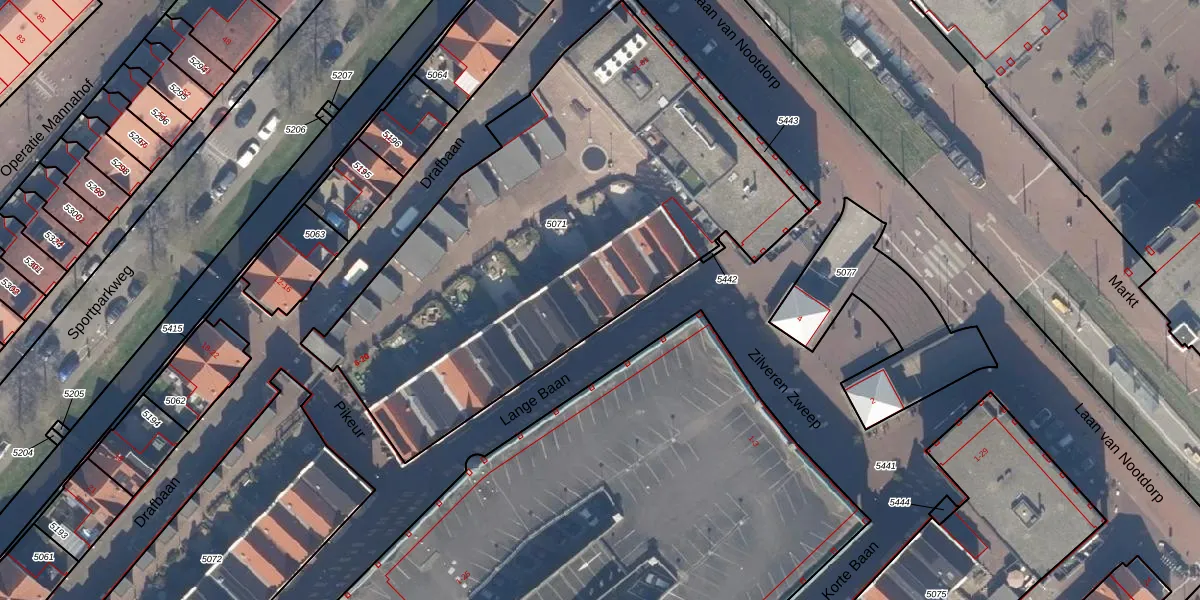 Lange Baan 6 is gelegen op kadastraal perceel NDP01C5071. Deze kadastrale aanduiding is uniek en wordt gebruikt door het Kadaster om eigendomsrechten en andere zakelijke rechten vast te leggen. Het perceel maakt onderdeel uit van de kadastrale gemeente Nootdorp.