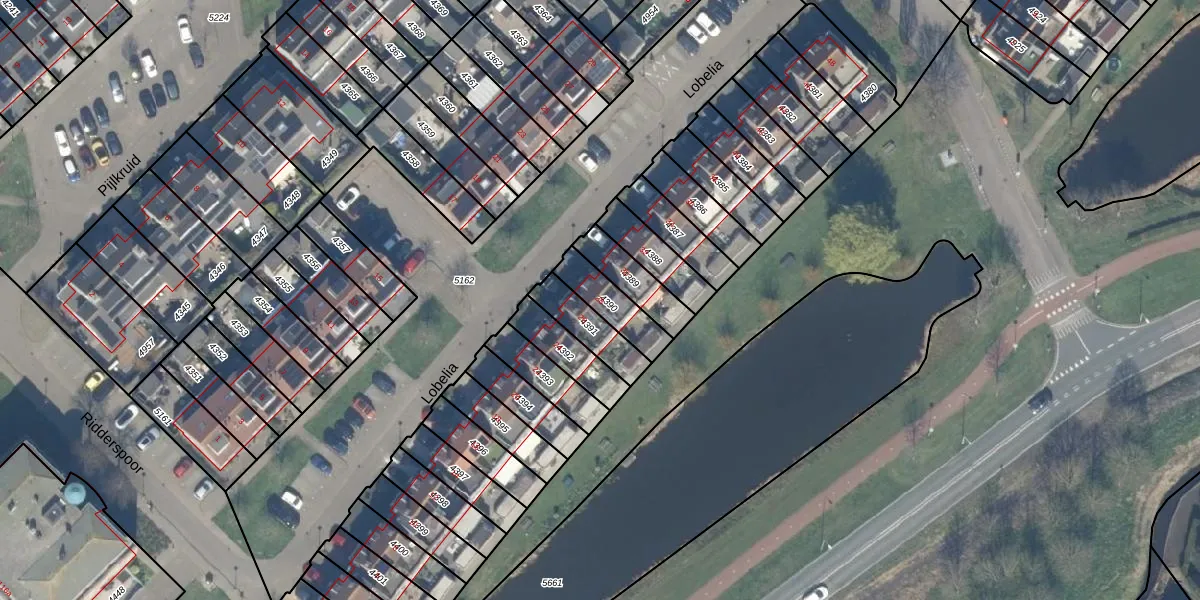 Gebruik de zoekbalk of klik op een perceel voor informatie over de adressen binnen dit perceel.