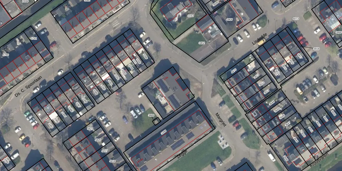Het perceel waarop Margriet 4 staat heeft een oppervlakte van 496 m². Dit is een groot perceel. De perceeloppervlakte wordt geregistreerd door het Kadaster. Gedetailleerde informatie over de maten van dit perceel kunt u vinden in het rapport Kadastrale kaart met maatvoering van Margriet 4.