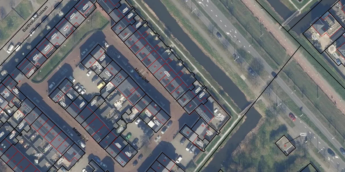 Het perceel waarop Margrijhof 40 staat heeft een oppervlakte van 787 m². Dit is een groot perceel. De perceeloppervlakte wordt geregistreerd door het Kadaster. Gedetailleerde informatie over de maten van dit perceel kunt u vinden in het rapport Kadastrale kaart met maatvoering van Margrijhof 40.