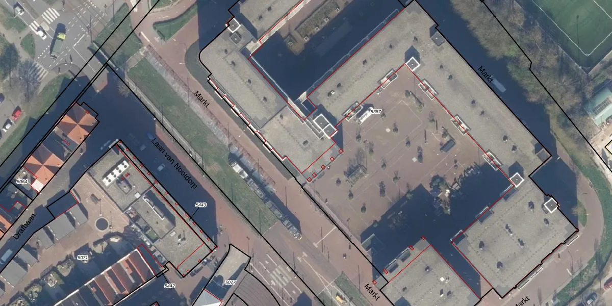 Het perceel waarop Markt 125 staat heeft een oppervlakte van 8385 m². Dit is een zeer groot perceel. De perceeloppervlakte wordt geregistreerd door het Kadaster. Gedetailleerde informatie over de maten van dit perceel kunt u vinden in het rapport Kadastrale kaart met maatvoering van Markt 125.