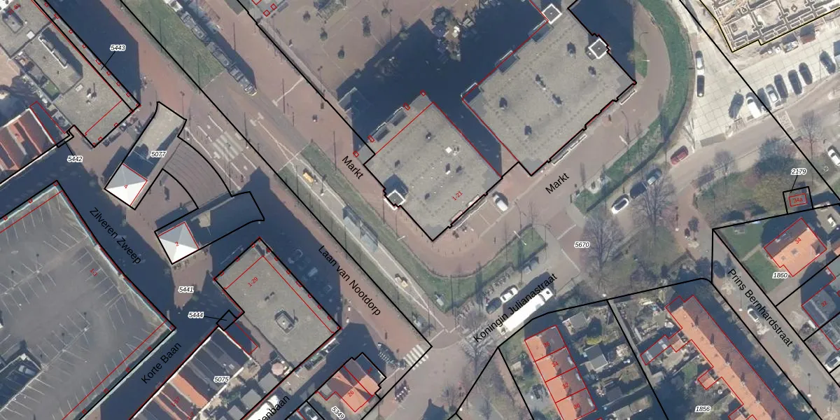 Het perceel waarop Markt 13 staat heeft een oppervlakte van 8385 m². Dit is een zeer groot perceel. De perceeloppervlakte wordt geregistreerd door het Kadaster. Gedetailleerde informatie over de maten van dit perceel kunt u vinden in het rapport Kadastrale kaart met maatvoering van Markt 13.