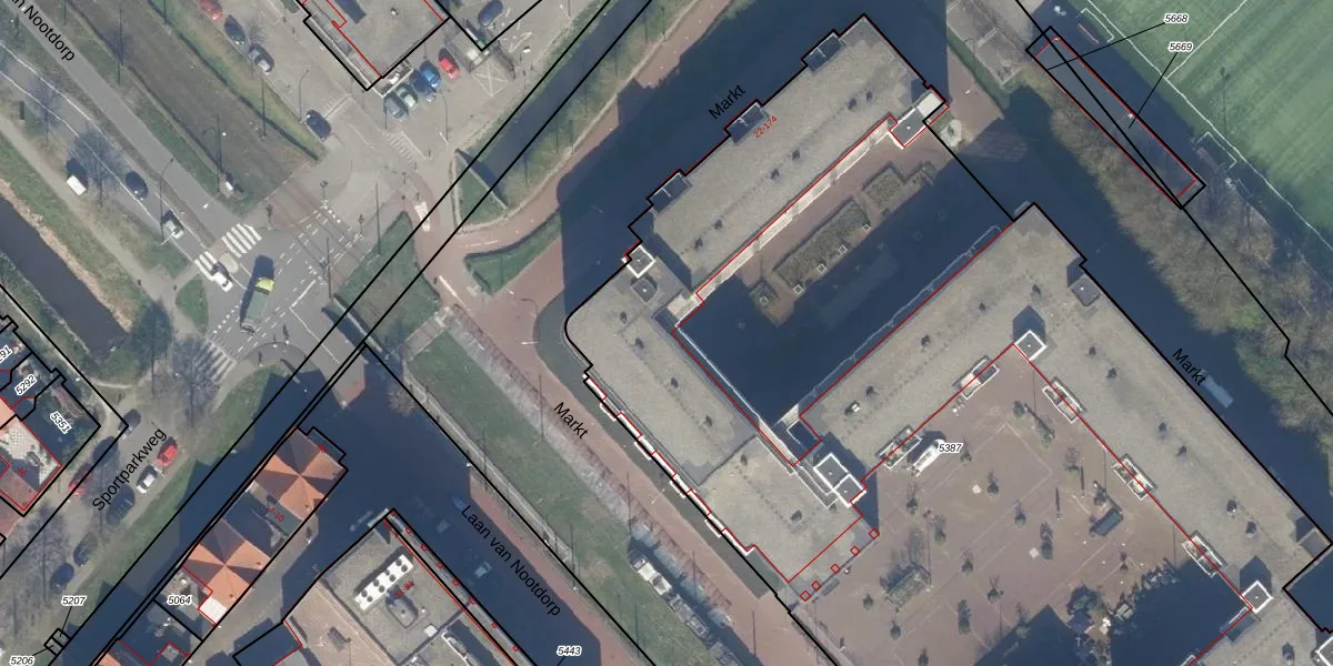 Het perceel waarop Markt 141 staat heeft een oppervlakte van 8385 m². Dit is een zeer groot perceel. De perceeloppervlakte wordt geregistreerd door het Kadaster. Gedetailleerde informatie over de maten van dit perceel kunt u vinden in het rapport Kadastrale kaart met maatvoering van Markt 141.