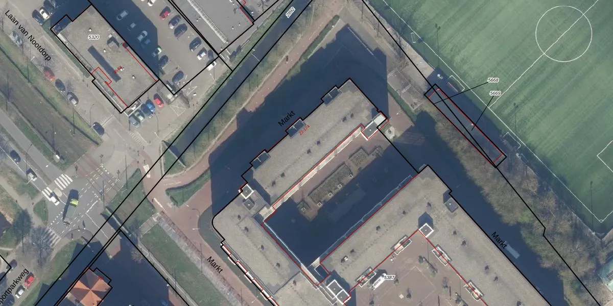 Het adres is gelegen op perceel 5387 in de sectie C en de kadastrale gemeente Nootdorp. De kadastrale aanduiding is aldus NDP01-C-5387. Het perceel is met 8385 m² relatief groot. Het gemiddelde ligt in de kadastrale gemeente Nootdorp op 1150,92 m². De grootste perceeloppervlakte in de kadastrale gemeente is 62,8 ha. De kleinste oppervlakte bedraagt 0 m². Op het perceel liggen in totaal 162 adressen. In de Basisregistratie Kadaster (BRK) werden de grenzen van het perceel geregistreerd op 23-07-2007.