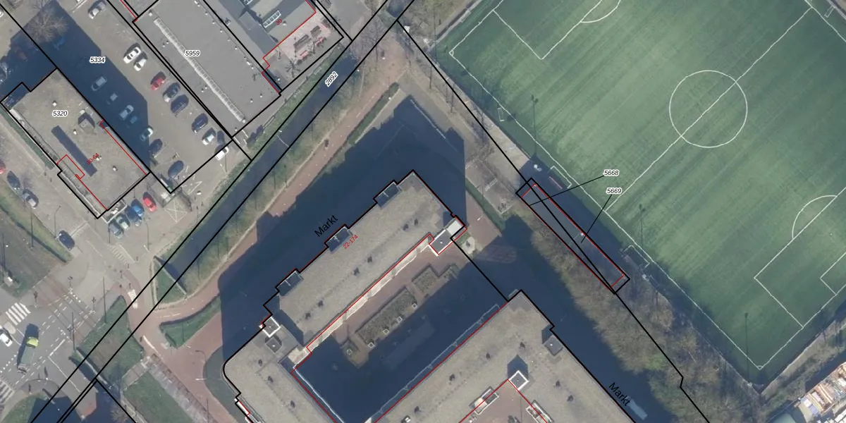 Het perceel waarop Markt 161 staat heeft een oppervlakte van 8385 m². Dit is een zeer groot perceel. De perceeloppervlakte wordt geregistreerd door het Kadaster. Gedetailleerde informatie over de maten van dit perceel kunt u vinden in het rapport Kadastrale kaart met maatvoering van Markt 161.