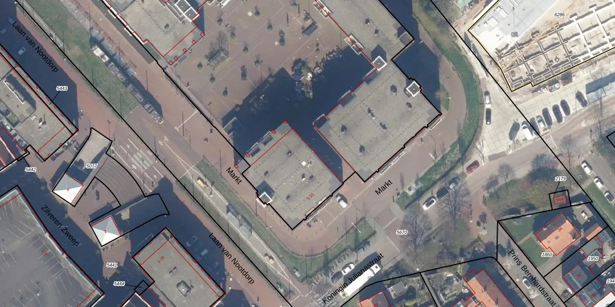 Het perceel waarop Markt 19 staat heeft een oppervlakte van 8385 m². Dit is een zeer groot perceel. De perceeloppervlakte wordt geregistreerd door het Kadaster. Gedetailleerde informatie over de maten van dit perceel kunt u vinden in het rapport Kadastrale kaart met maatvoering van Markt 19.